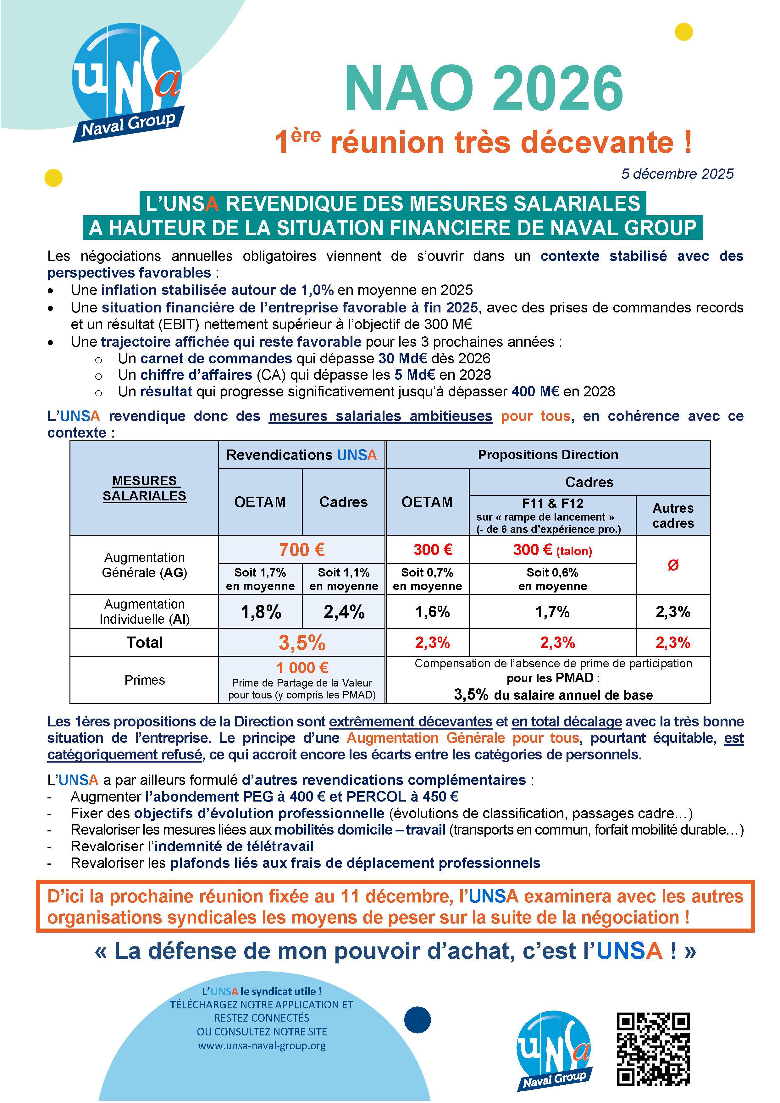 REVENDIQUE DES MESURES SALARIALES A HAUTEUR DE LA SITUATION FINANCIERE DE NAVAL GROUP