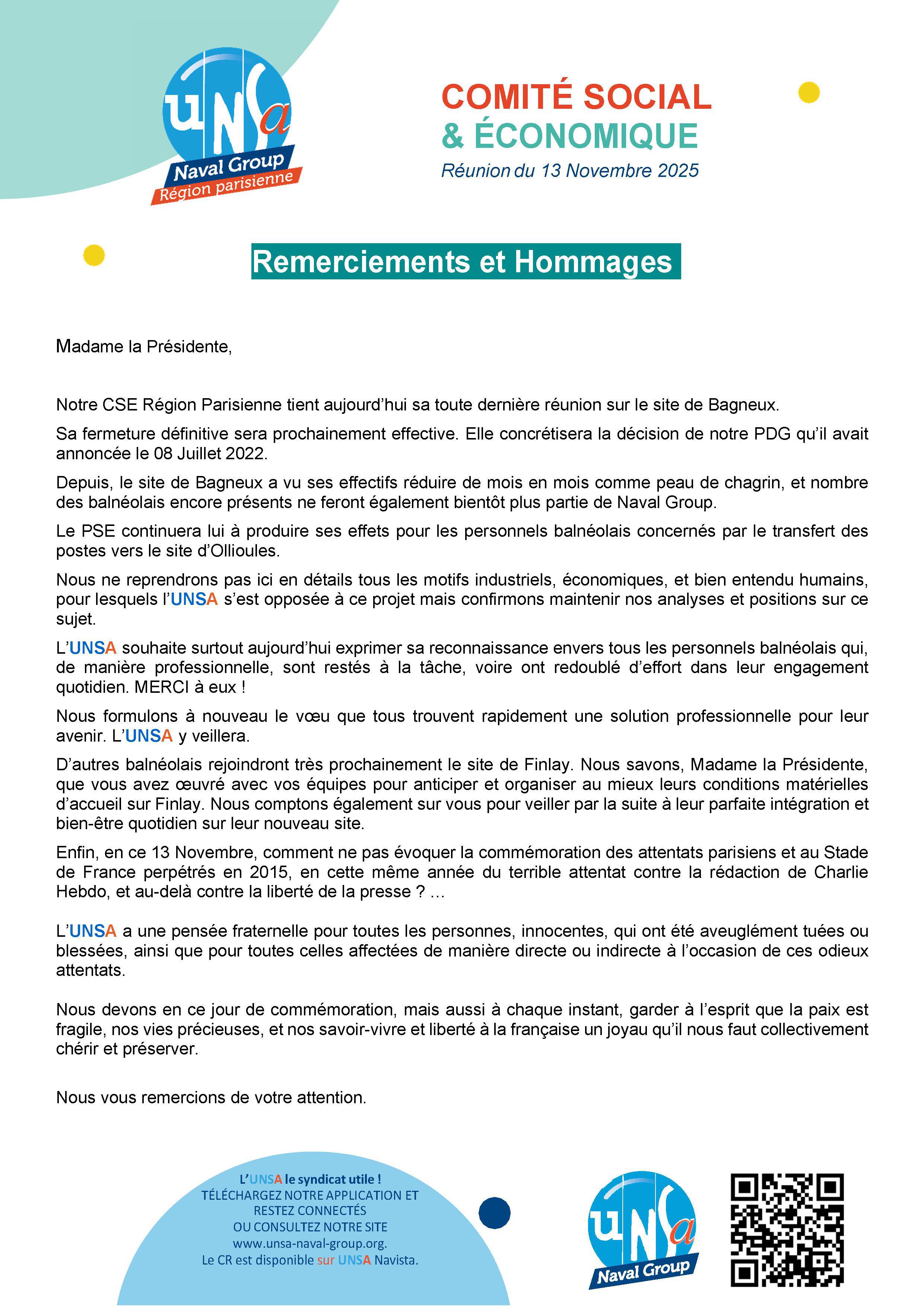 Réunion du 13 novembre 2025 - Déclaration liminaire